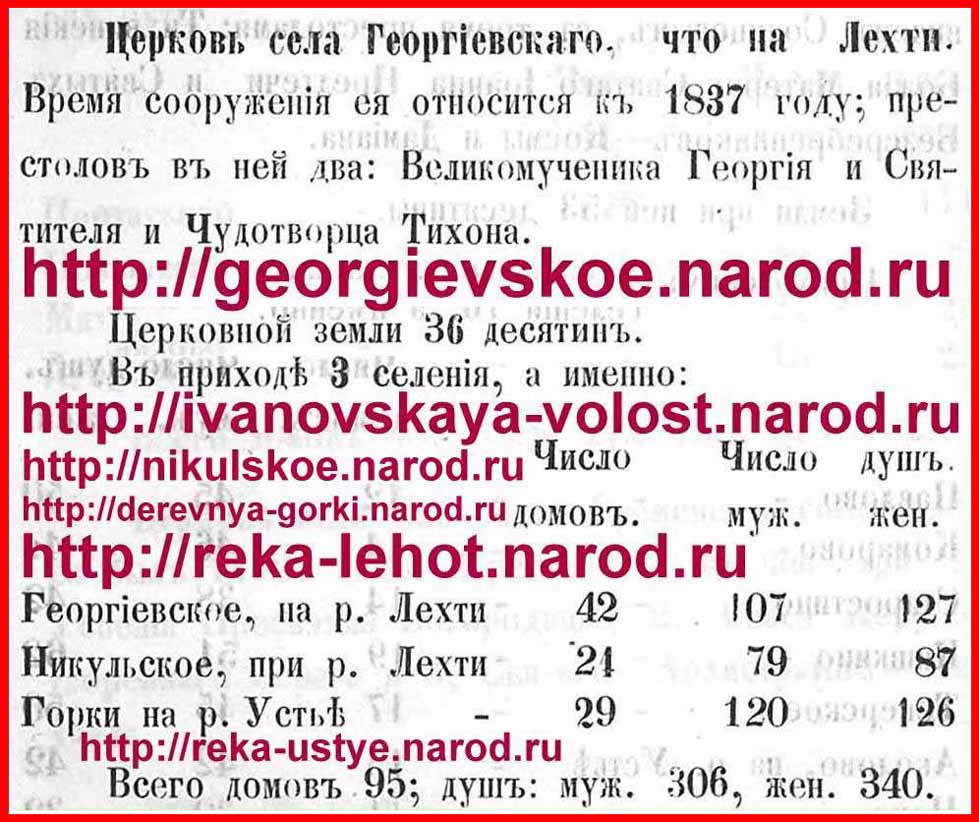 Из ценнейшей уникальной старинной (1885 года издания, 625 страниц) книги АНДРЕЯ АЛЕКСАНДРОВИЧА ТИТОВА ( http://andrey-titov1.narod.ru ) установлено, что в 1885 году село ГЕОРГИЕВСКОЕ (оно же - ЕГОРЬЕВСКОЕ) было центром ЕГОРЬЕВСКОГО Сельского Общества ИВАНОВСКОЙ на ЛЕХТЕ ВОЛОСТИ> http://ivanovskaya-volost.narod.ru