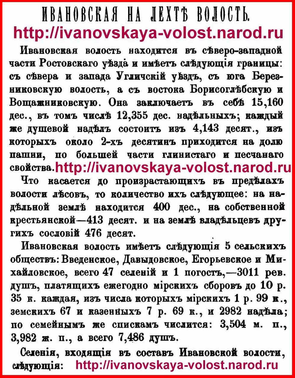 Знаменитый Ростовский краевед и археолог - ТИТОВ АНДРЕЙ АЛЕКСАНДРОВИЧ ( http://andrey-titov1.narod.ru - годы жизни 1844 - 1911, всего прожил 67 лет ), из ценнейшей книги которого (1885 года издания, 625 страниц) взяты мной все уникальные сведения о деревне ОЧЕСТОВО и о её красивейших и интереснейших окрестностях - о деревне ТИТОВО на ЛЕХТИ ( http://titovo-na-lehti.narod.ru ), о деревне БАРАНОВО ( http://derevnya-baranovo.narod.ru ), о деревне РЕЗАНКА ( http://rezanka1.narod.ru ), о деревне КОРОТЫЛЕВО ( http://korotylevo.narod.ru ), о деревне АЛЁШКИНО ( http://alyoshkino.narod.ru ), о деревне КУЧЕРЫ ( http://kuchery1.narod.ru ), о деревне ПЕТРЯЕВО ( http://petryaevo.narod.ru ), о деревне ПОДЛЕСНОВО ( http://podlesnovo.narod.ru ), о селе ИВАНОВСКОЕ на ЛЕХТИ ( http://ivanovskoe-na-lehti.narod.ru ), о деревне ЛЕХОТЬ ( http://lehot1.narod.ru ), о деревне ЧЕРНЯТИНО ( http://chernyatino1.narod.ru ), о деревне ЛЯНИНО ( http://lyanino.narod.ru ), о деревне ВЁРТЛОВО ( http://vertlovo.narod.ru ), о селе ГЕОРГИЕВСКОЕ на ЛЕХТИ ( http://georgievskoe.narod.ru ), о деревне ГОРКИ ( http://derevnya-gorki.narod.ru ), о деревне НИКУЛЬСКОЕ ( http://nikulskoe.narod.ru ), о деревне ГОРОДИЩЕ ( http://derevnya-gorodishe.narod.ru ), о селе ЗУБАРЁВО ( http://zubaryovo.narod.ru ), о деревне КУШНИКОВО ( http://kushnikovo.narod.ru ), о деревне ЧУХОЛЗА ( http://chuholza.narod.ru ), о деревне ЗВЯГИНО ( http://zvyagino1.narod.ru ), о деревне ЕМЕЛЬЯНИКОВО ( http://emelyanikovo.narod.ru ), о деревне КАЛИНИНО ( http://derevnya-kalinino.narod.ru ), о деревне ПОПОВСКОЕ ( http://popovskoe.narod.ru ), о деревне ПРОКОФЬЕВО ( http://prokofyevo.narod.ru ), о деревне ПЛЕЧОВО ( http://plechovo.narod.ru ), о деревне МАКЛАКОВО ( http://maklakovo1.narod.ru ), о деревне КЛИМОВО ( http://derevnya-klimovo.narod.ru - она же КЛИМОВКА), о реке ЛЕХОТЬ ( http://reka-lehot.narod.ru ), о реке КУТЬМА ( http://reka-kutma.narod.ru ), о реке УТЬМА ( http://reka-utma.narod.ru - древнее название УТОМА), о реке ЛЫБОРКА и о др.: